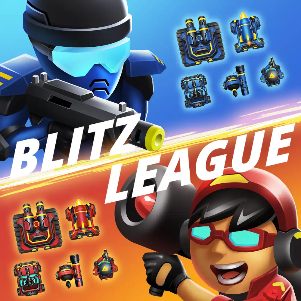 تقديم Blitz League، لعبة معارك في الوقت الفعلي حيث ينجو فقط أقوى (...وأذكى) التكتيكيين! قاتل الخصوم واحتل الأراضي بجيشك من الوحدات.